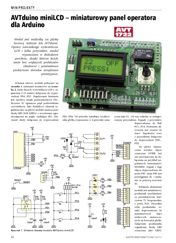 AVT1722 AVTduino miniLCD - miniaturowy panel operatora dla Arduino