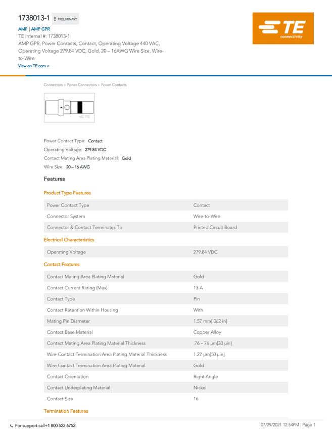 TE Connectivity 1738013-1 TE AMP ARINC Products, 1 szt.