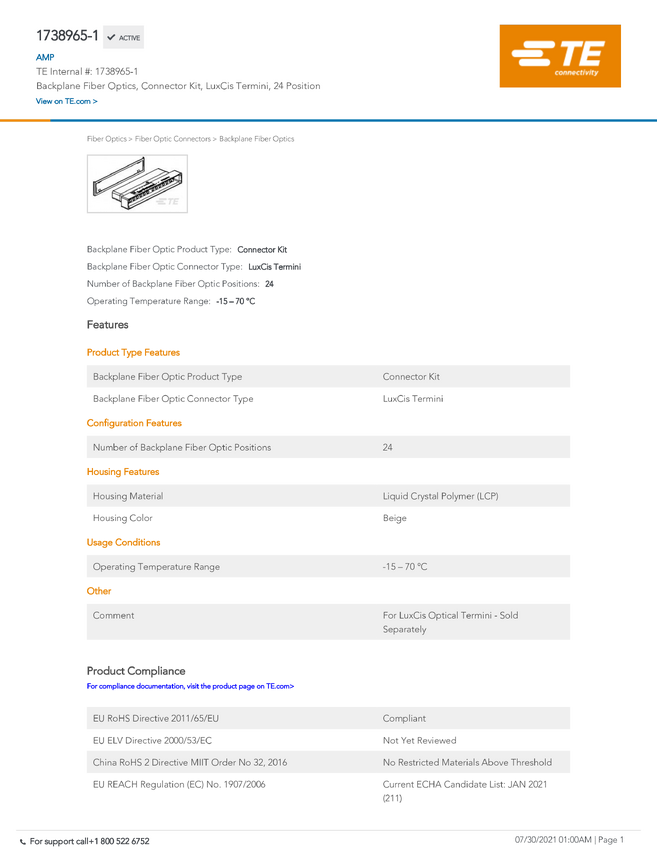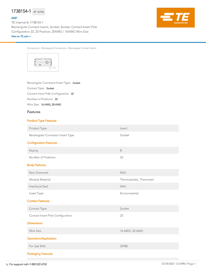 TE Connectivity 1738154-1 TE AMP ARINC Products, 1 szt.