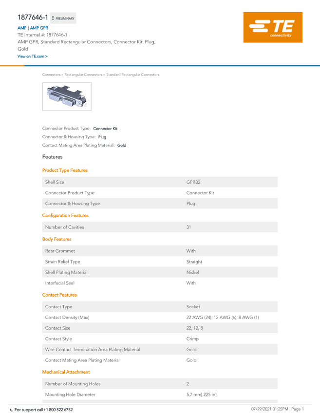TE Connectivity 1877646-1 TE AMP ARINC Products, 1 szt.
