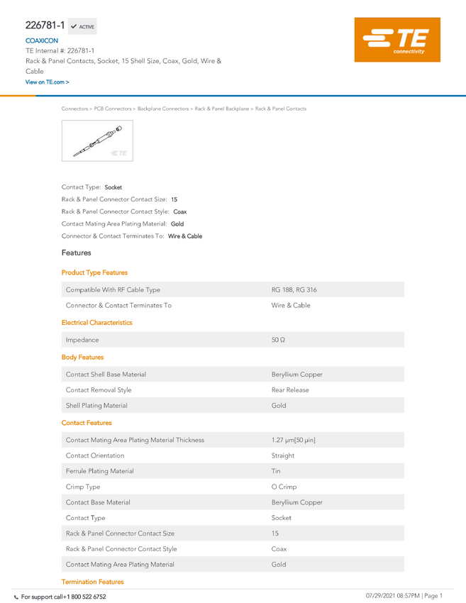 TE Connectivity 926088-2 TE AMP ARINC Products, 1 szt.