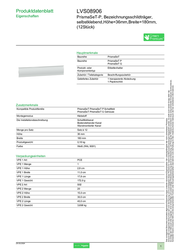 Schneider Electric LVS08906 Wkładka arkusza opisowego