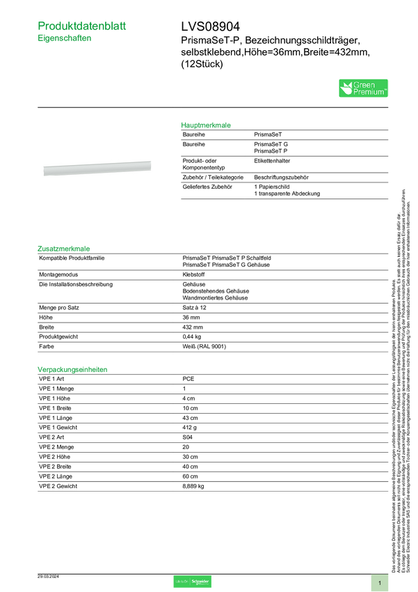 Schneider Electric LVS08904 Wkładka arkusza opisowego