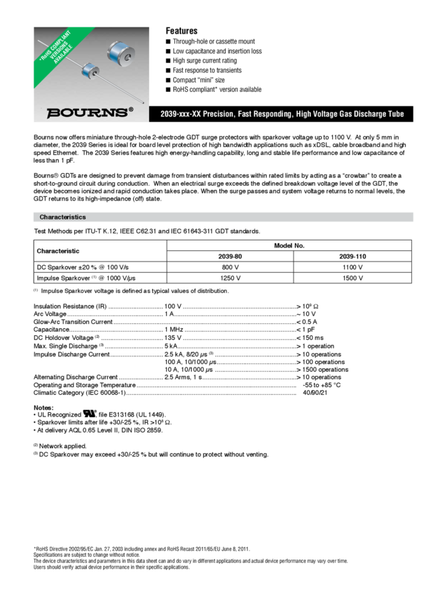 Surge Arrestor 2-Electrode Arrestor 1000VDC 2.5KA Thru-Hole Strip