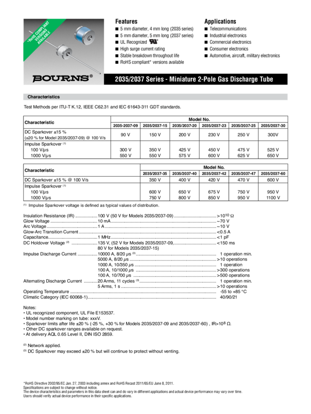 Surge Arrestor Gas Discharge Tube 230V 2kA SMD T/R