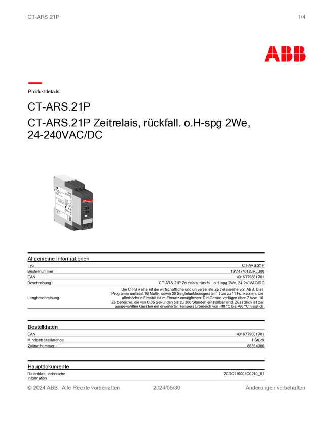 ABB 1SVR740120R3300 Przekaźnik czasowy CT-ARS.21P, 1 szt.