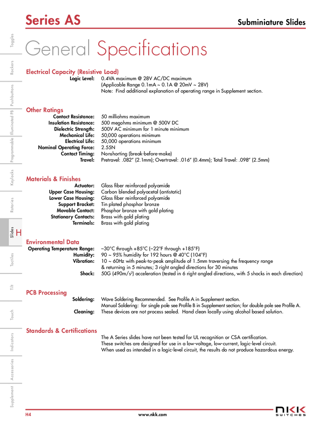 Przełącznik suwakowy NKK Switches AS22AP, 28 V DC/AC, 100 mA