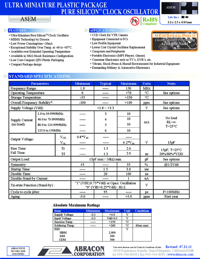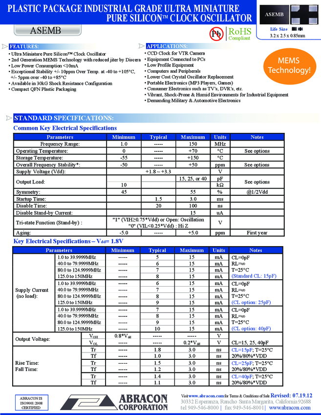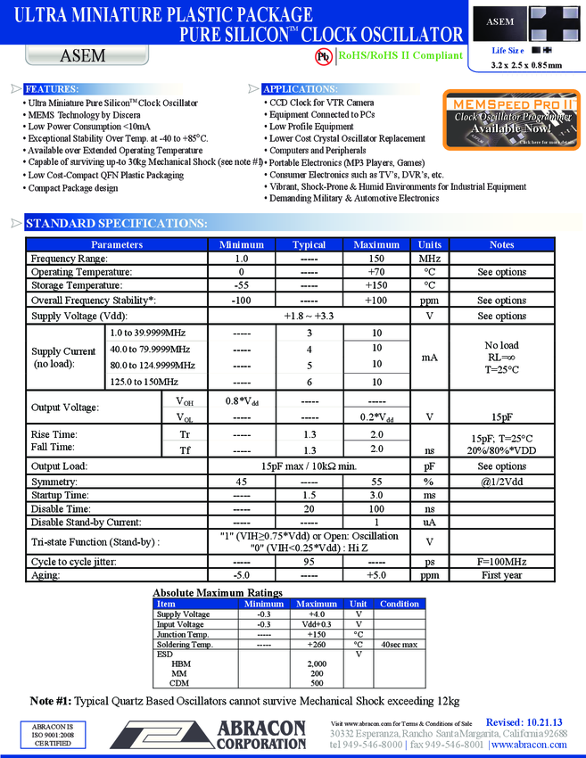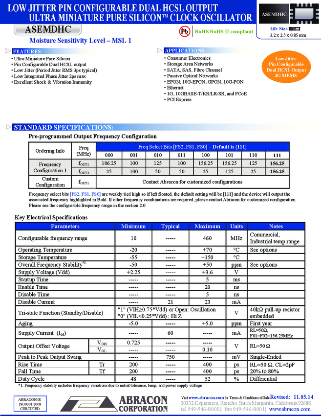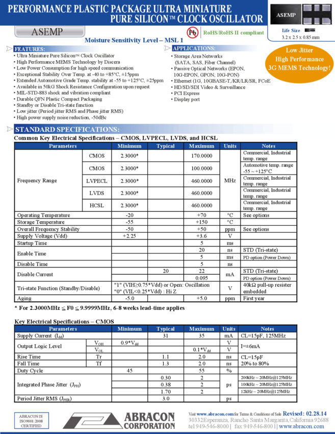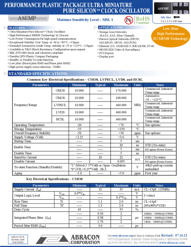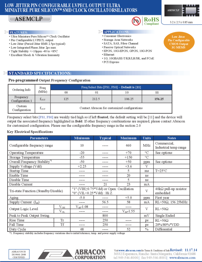 TIGHT STABILITY INDUSTRIAL TEMP 3RD GEN. HIGH PERFORMANCE LO