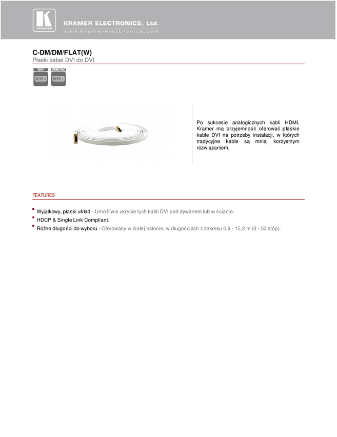 Kabel płaski DVI-D Single Link Cable (Male – Male) o długości 7,6m