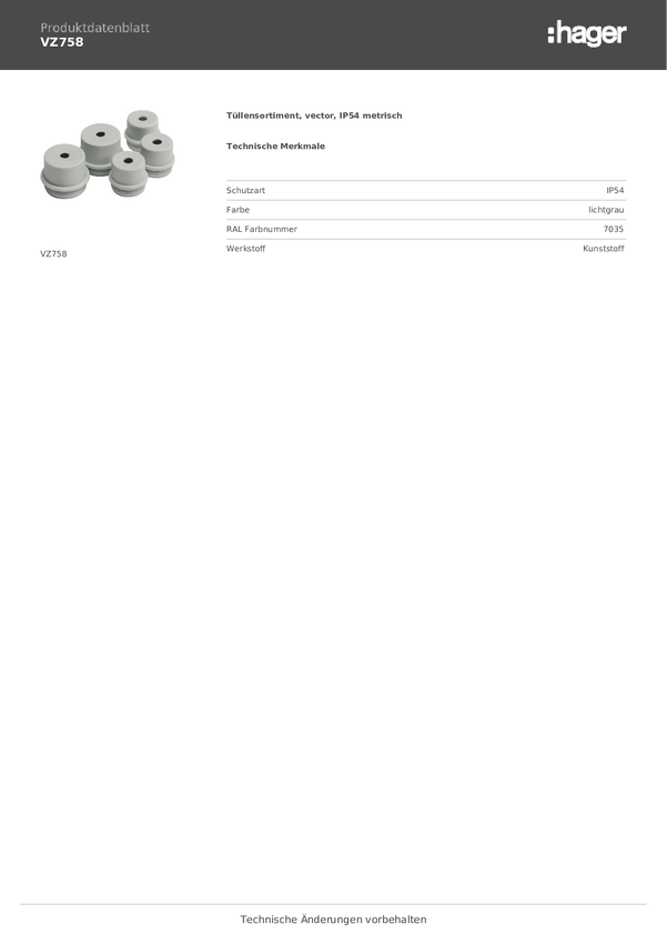 Hager VZ758 Asortyment tulei plastik szary 1 szt.