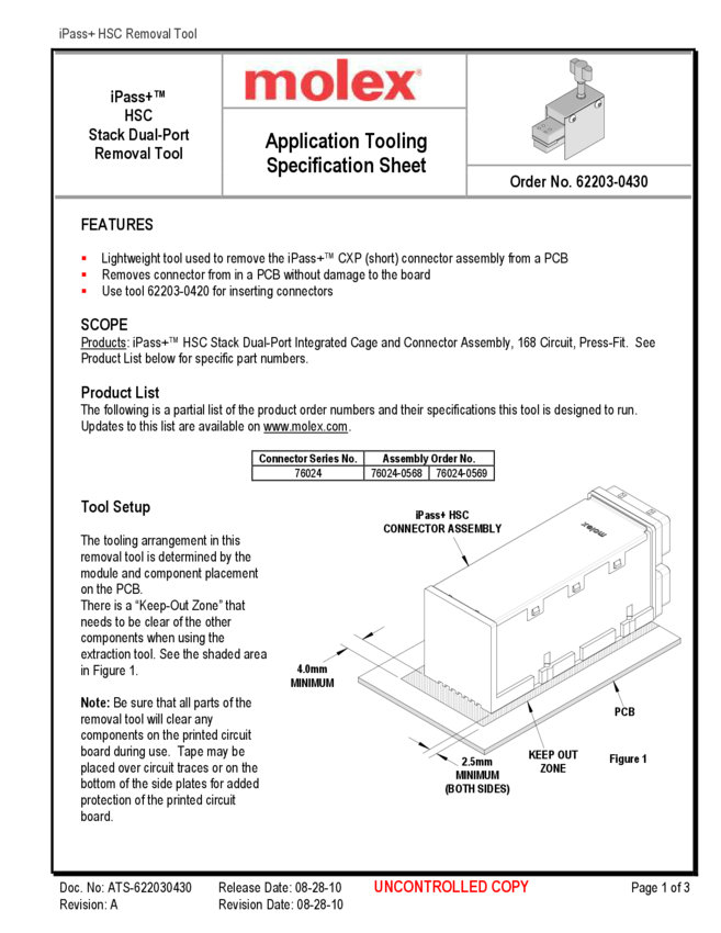 Removal Tool For 76024 iPass+ HSC Stack Integrated Cage and Connector Assembly