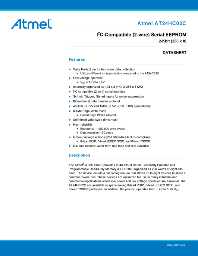 1Mb I²C-compatible 2-wire Serial EEPROM