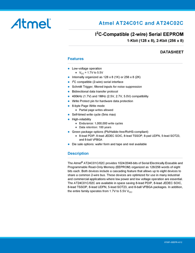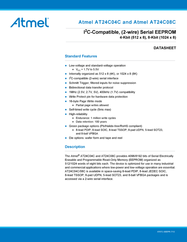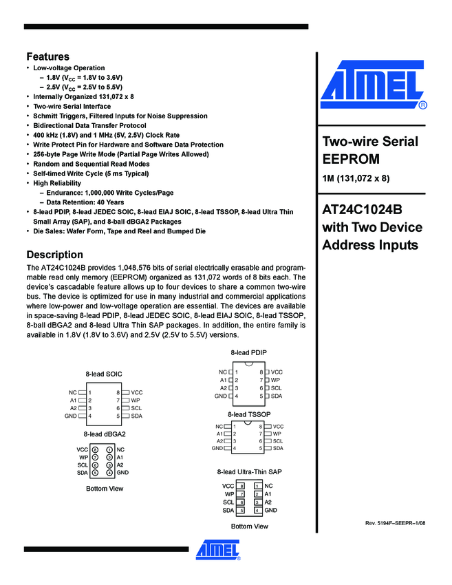 1-Mbit I2C-compatible 2-wire Serial EEPROM