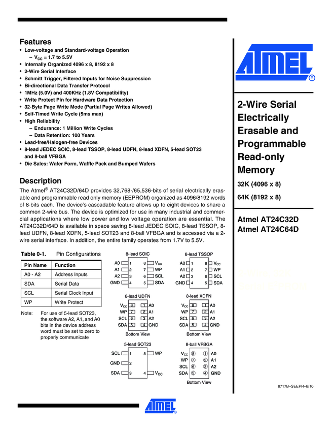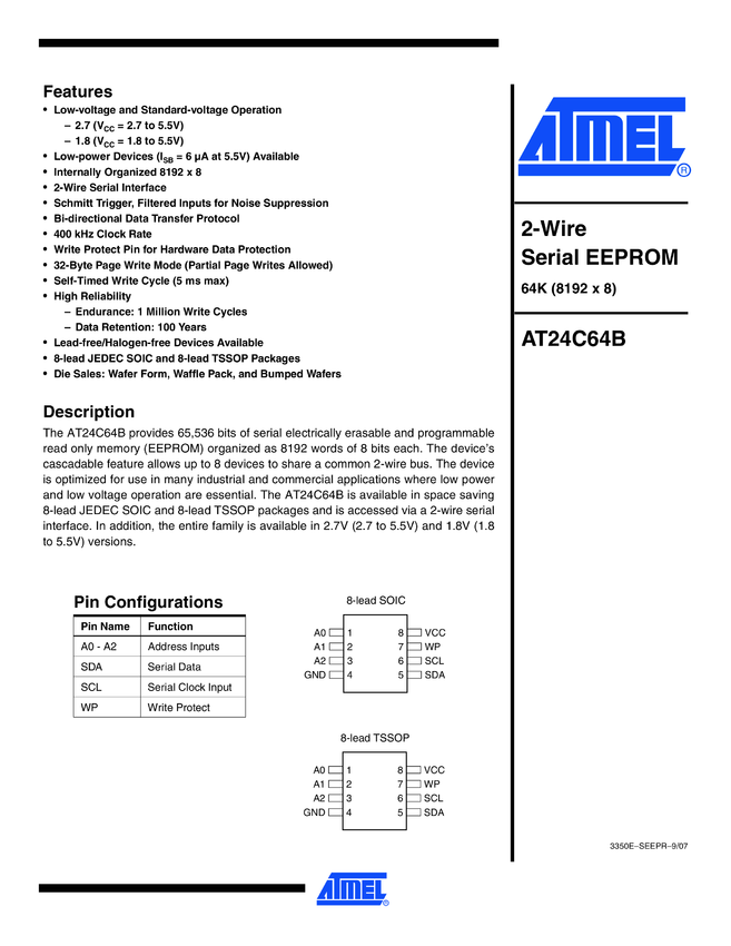 64Kb I²C-compatible 2-wire Serial EEPROM