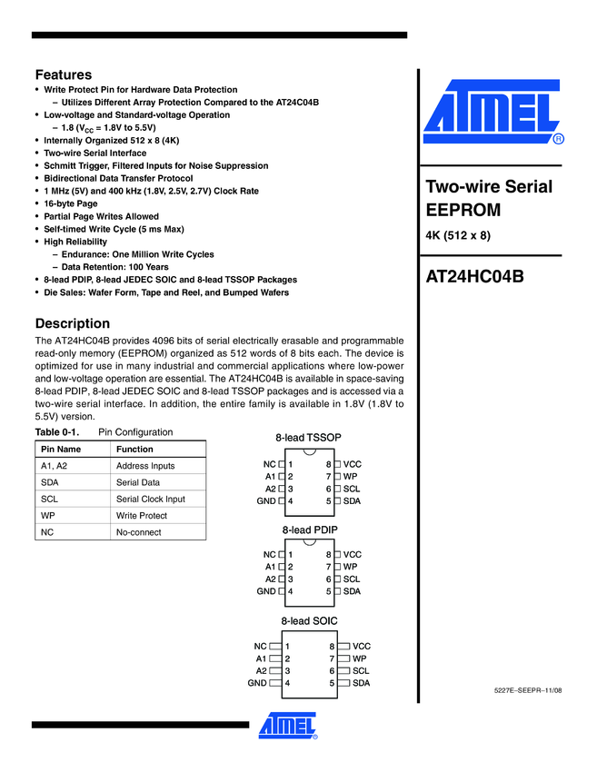 4Kb I²C-compatible 2-wire Serial EEPROM
