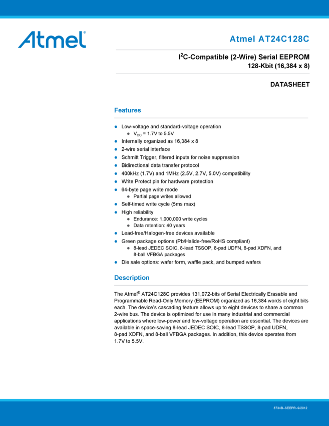 128Kb I²C-compatible 2-wire Serial EEPROM