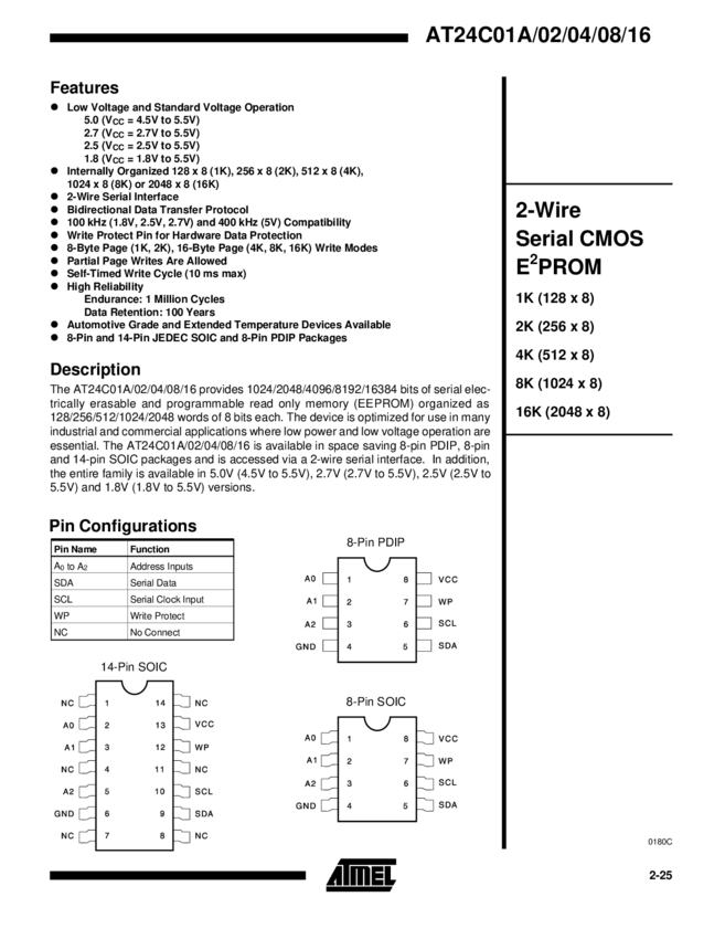 2Kb I²C-compatible 2-wire Serial EEPROM