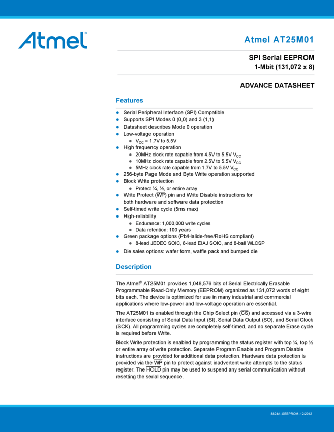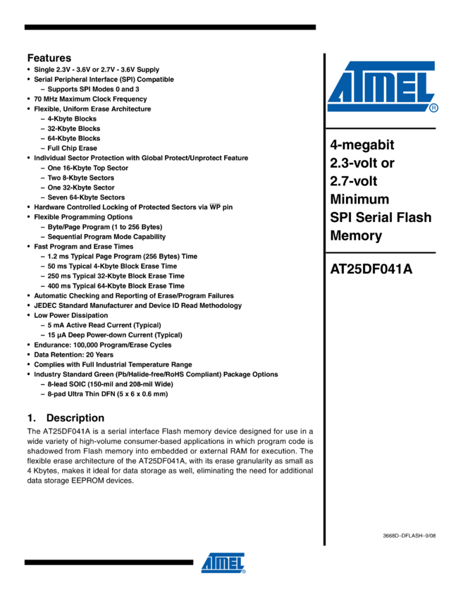 8-Mbit 2.7V Minimum SPI Serial Flash Memory