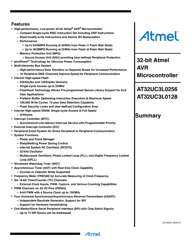 32-bit Atmel® AVR® Microcontroller, 128KB Flash, 48-pin, CAT Module, FlashVault code protection