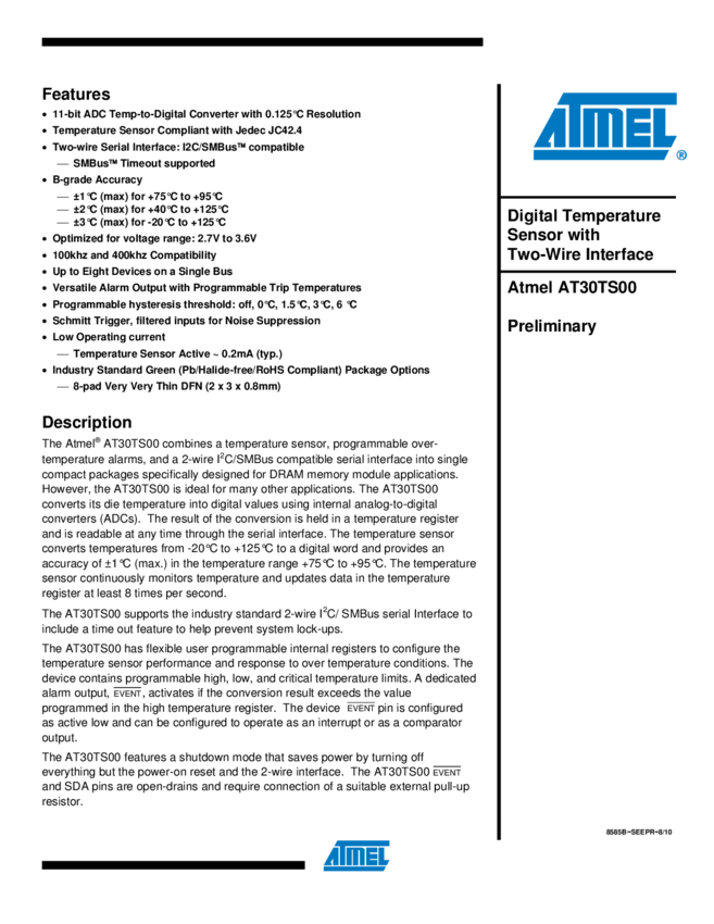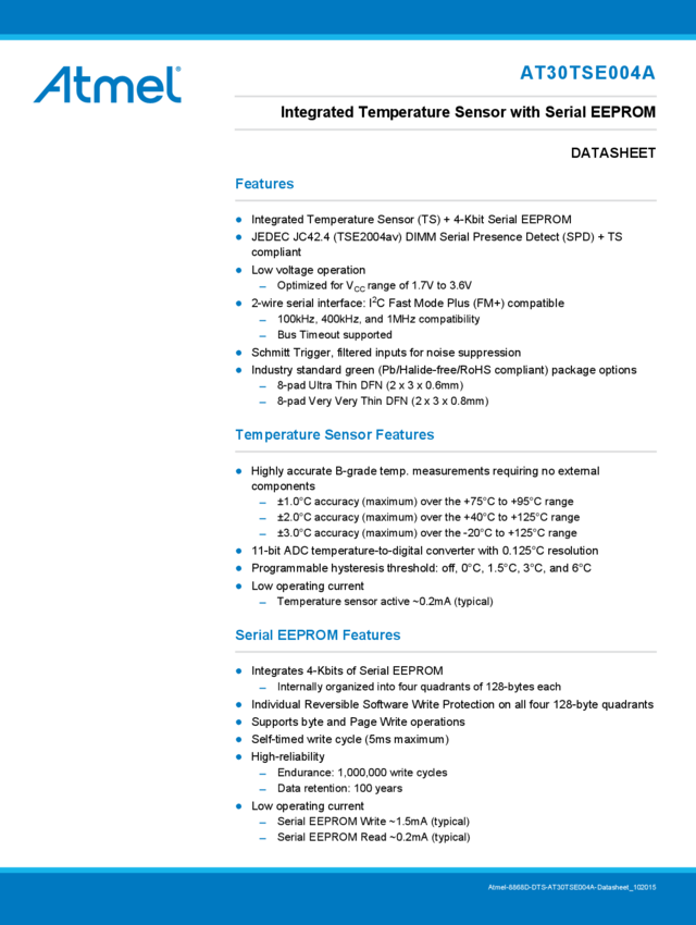 4Kb I²C-compatible 2-wire Serial EEPROM with Reversible Software Write Protection