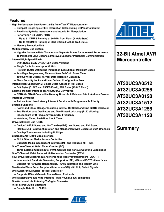 32-bit AVR Microcontroller, 128KB Flash, 64-pin