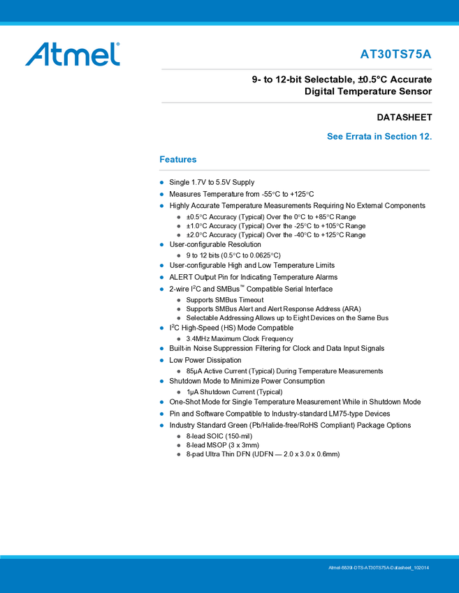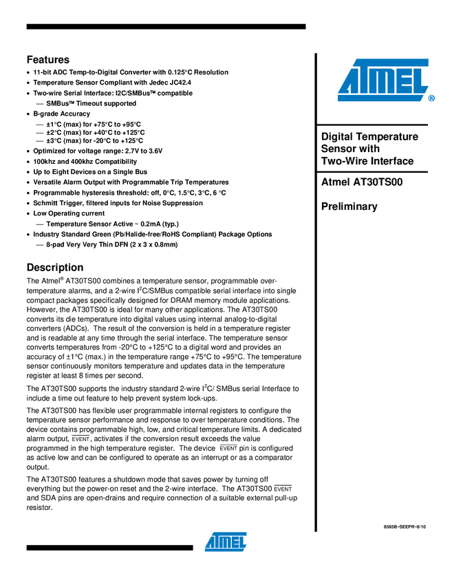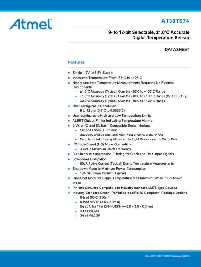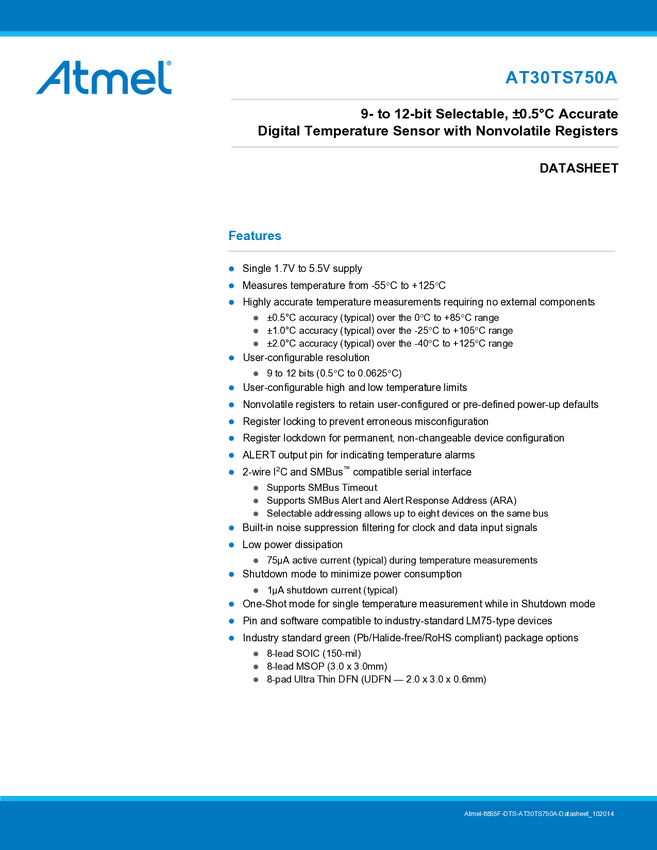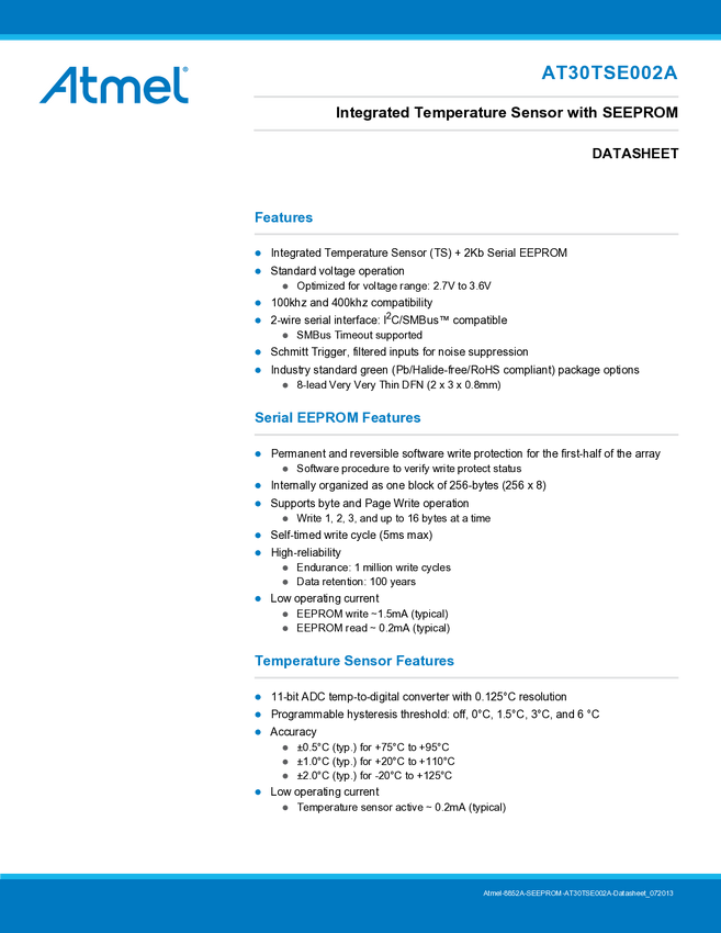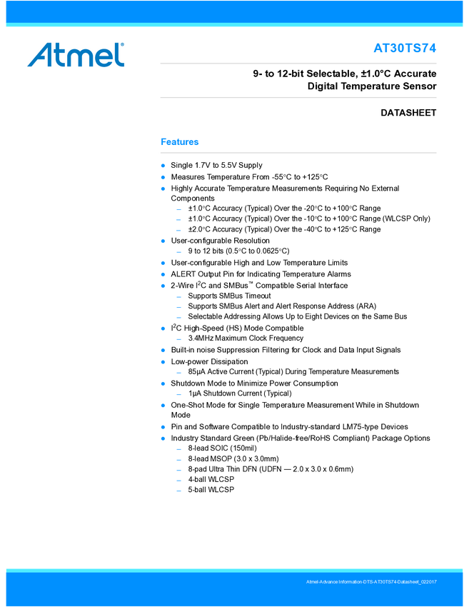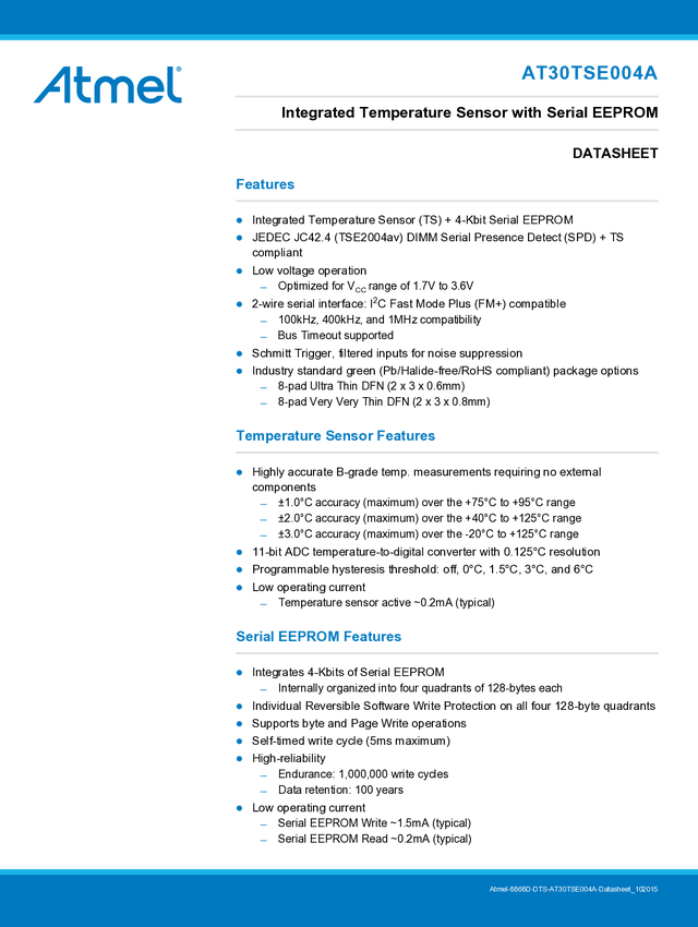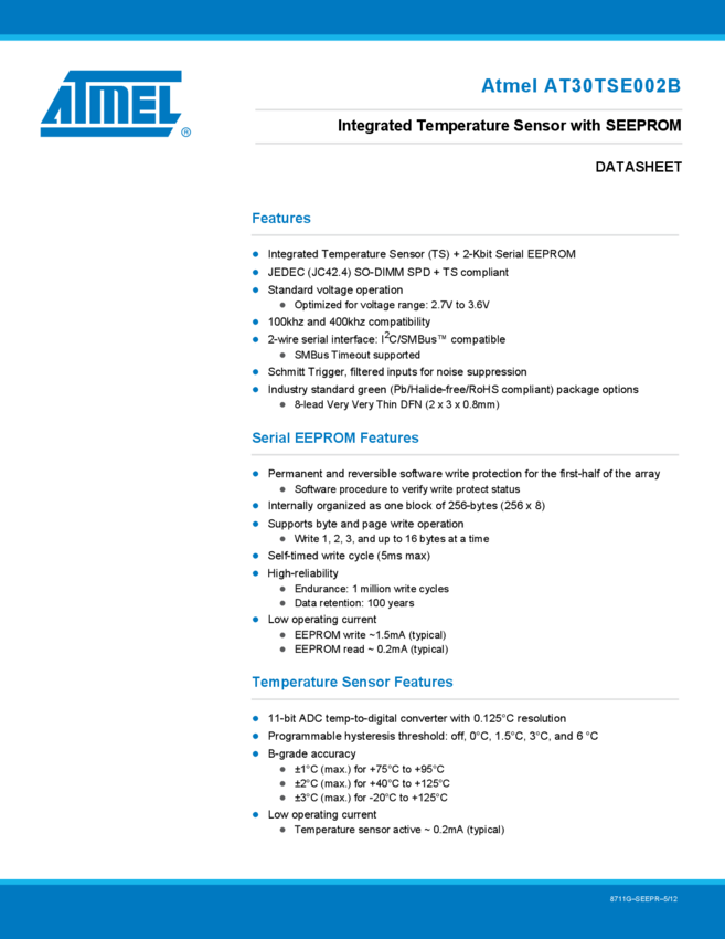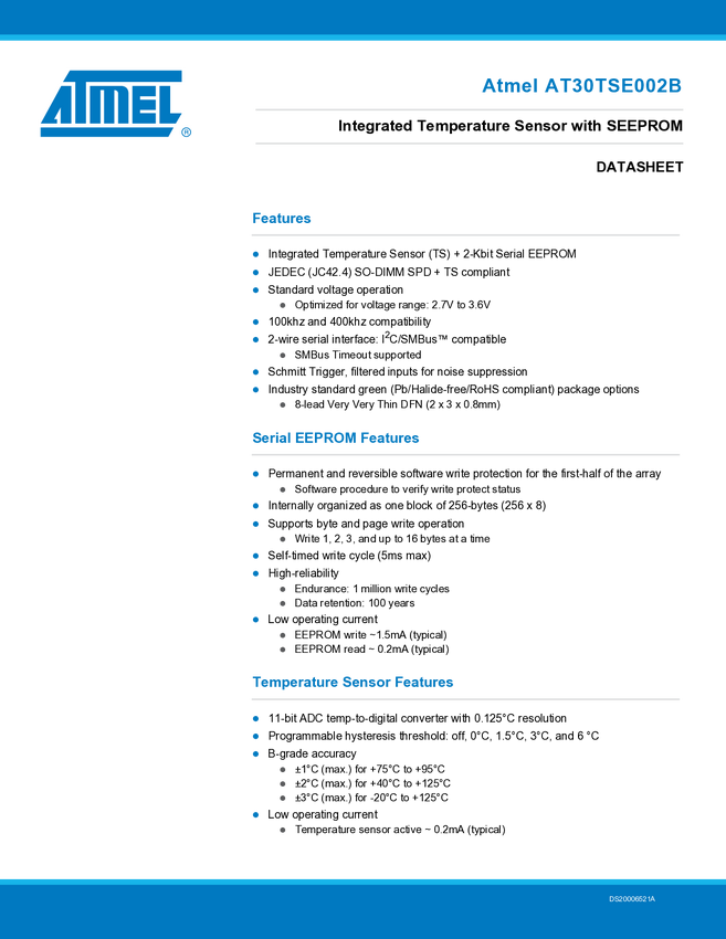 AT30TSE002B - Integrated Temperature Sensor with SEEPROM
