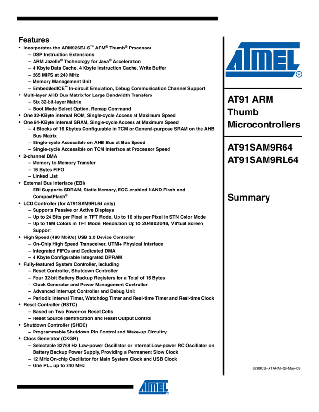 ARM926EJ Microcontroller with 128KB Flash, Ethernet, USB, 208 and 217 Pins