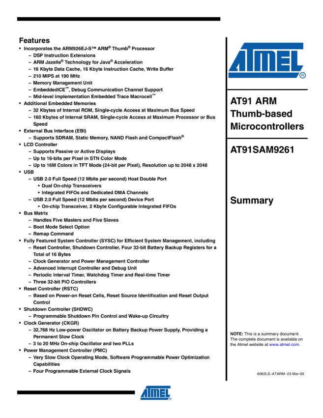 ARM926EJ Embedded Microprocessor Unit, 190MHz, 160KB SRAM, LCD, USB, 217 Pins