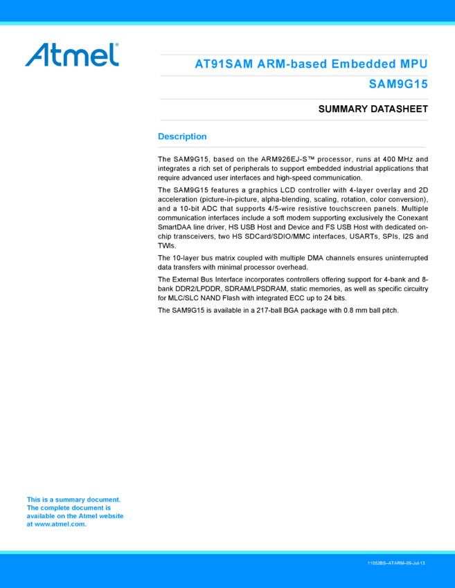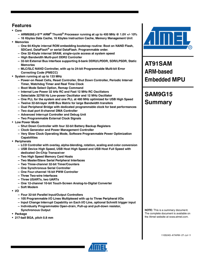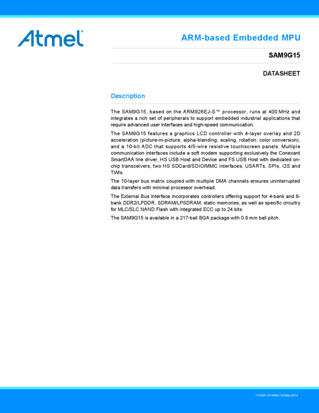 ARM926EJ Embedded Microprocessor Unit, 400MHz, LCD, Touchscreen, HS USB, LPDDR/DDR2/MLC NAND support, 217 Pins