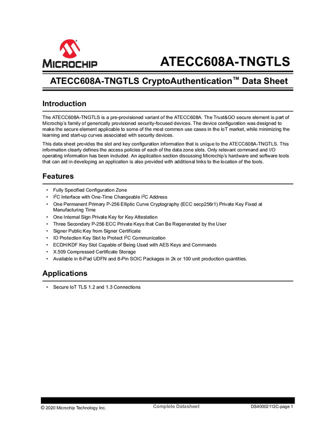 ATECC608A-TNGTLS CryptoAuthentication Data Sheet