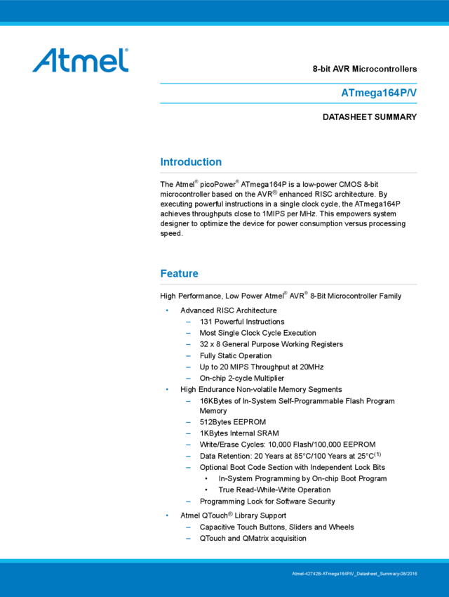 ATmega164P, ATmega324P, ATmega644P Automotive Datasheet