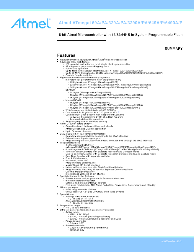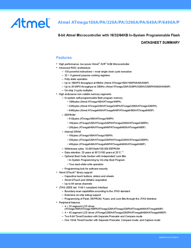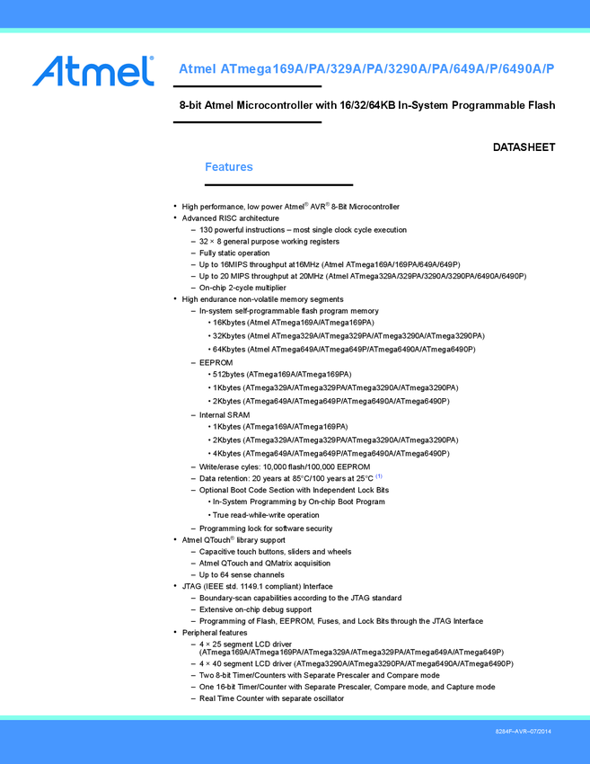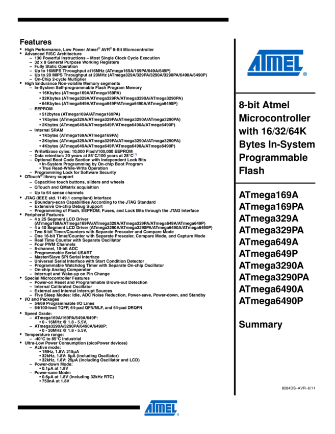 ATmega169A/PA/329A/PA/3290A/PA/649A/P/6490A/P Datasheet