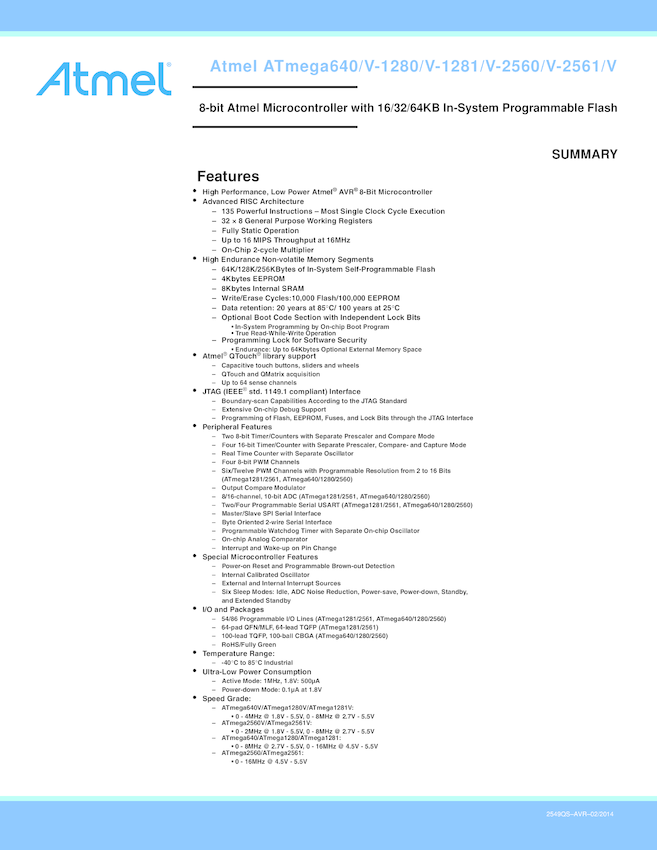 8-bit AVR Microcontroller, 32KB Flash, 64-pin
