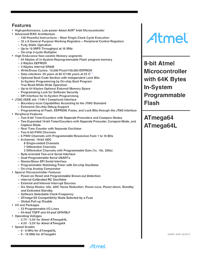 8-bit AVR Microcontroller, 64KB Flash, 64-pin