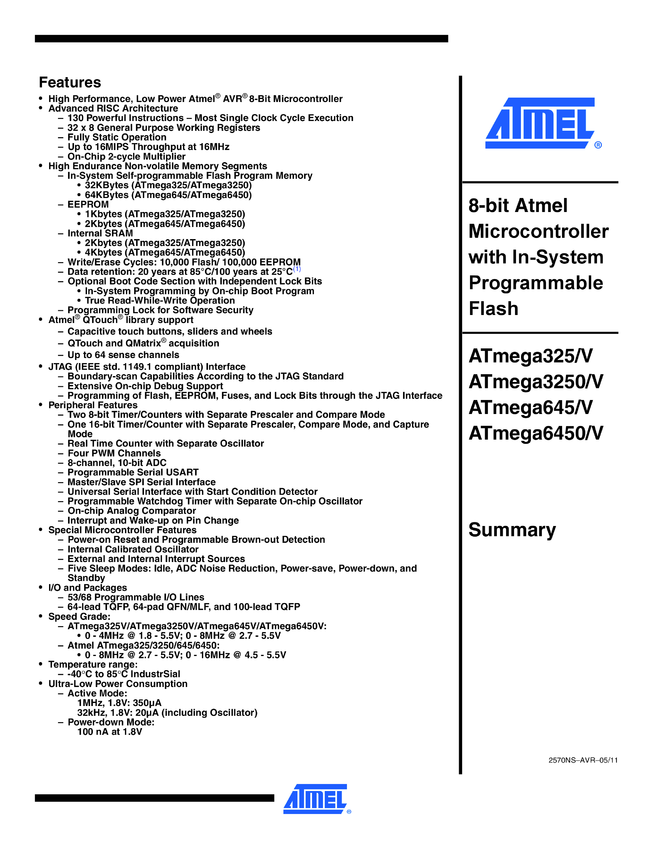 Single-chip 8-bit Microcontroller with Low Power 2.4GHz Transceiver for IEEE 802.15.4 and ZigBee Applications