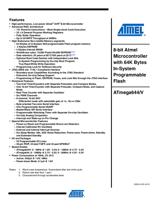 8-bit AVR Microcontroller, 64KB Flash, 40/44-pin