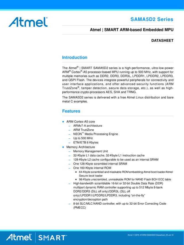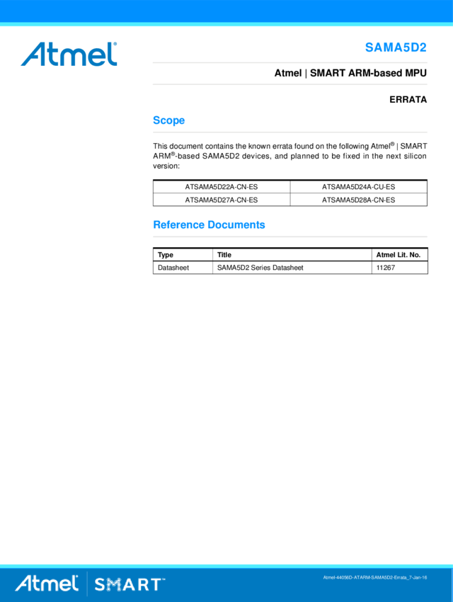 SAMA5D2 Errata for Engineering Samples Datasheet