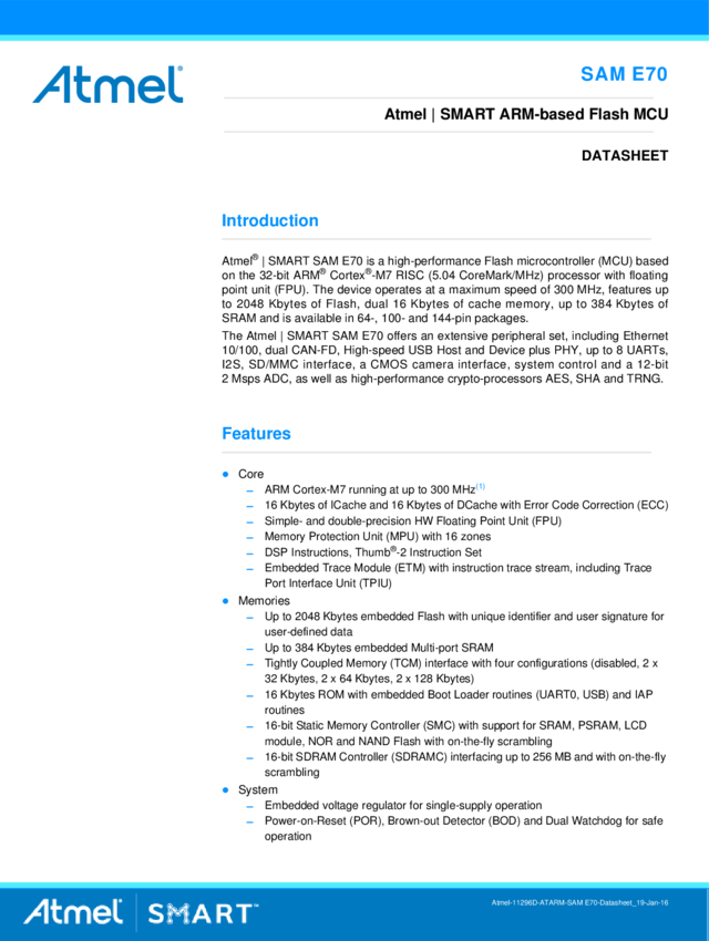 SAM E70 Datasheet