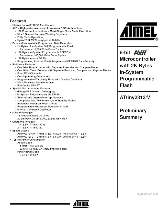 ATtiny2313 Datasheet
