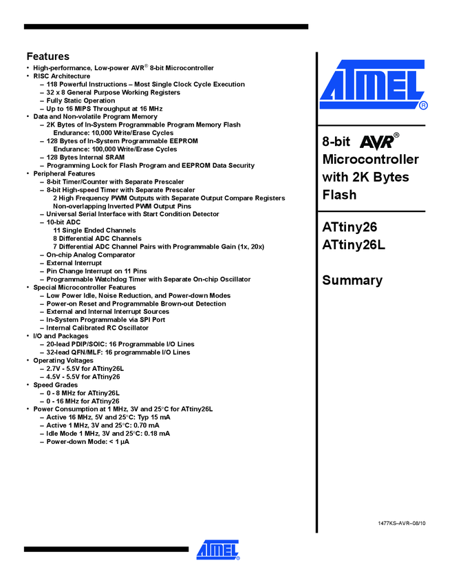 ATtiny261/461/861 - Summary Datasheet