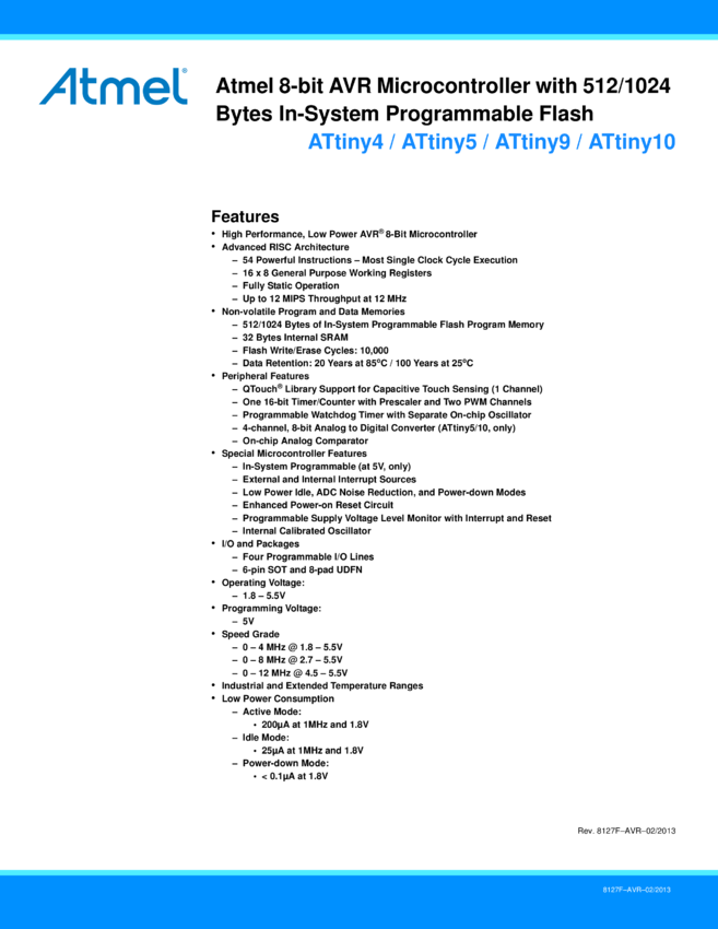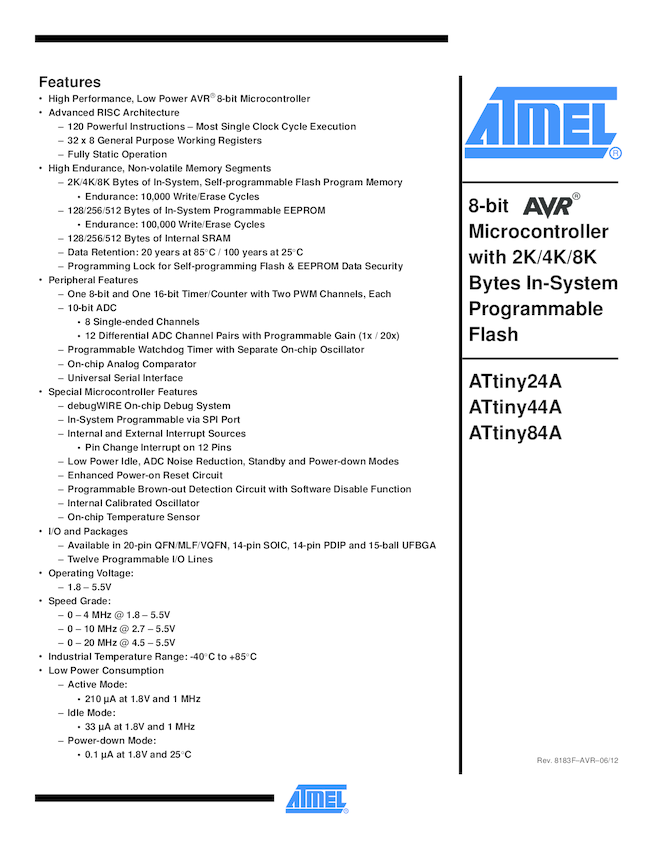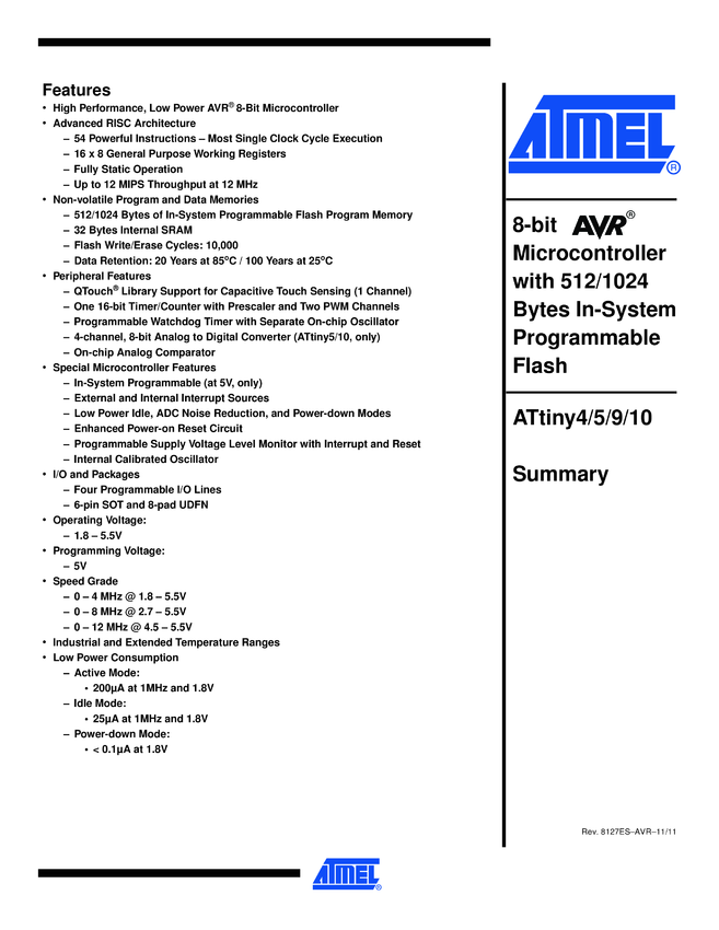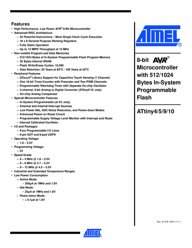 8-bit AVR Microcontroller, 1KB Flash, 6/8-pin, ADC