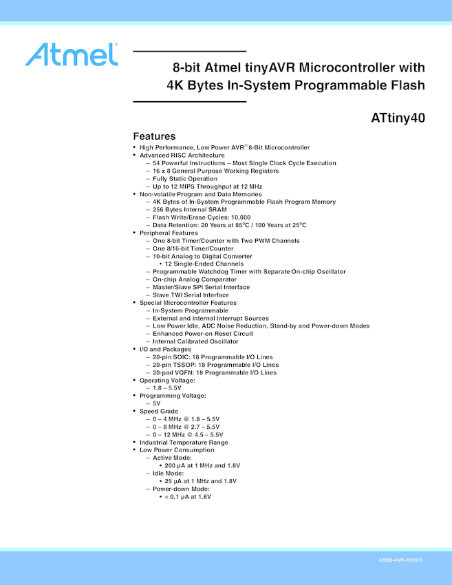 8-bit AVR Microcontroller, 2KB Flash, 8/20-pin