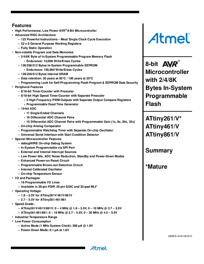 Appendix A - ATtiny261A Specification at 125?C Datasheet