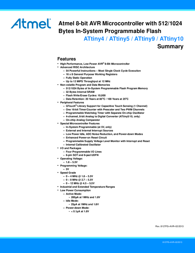Appendix A - ATtiny4/5/9/10 Specification at 125?C Datasheet