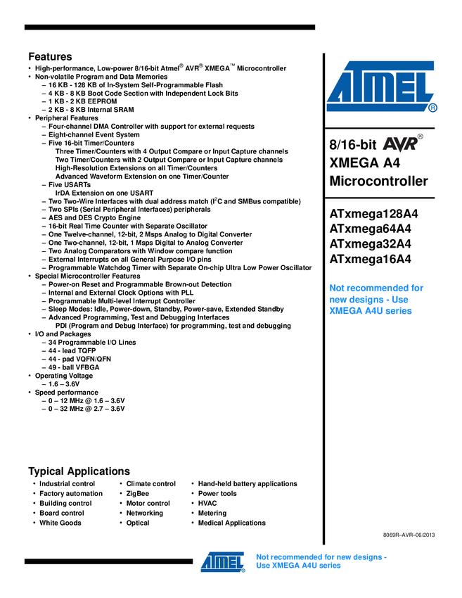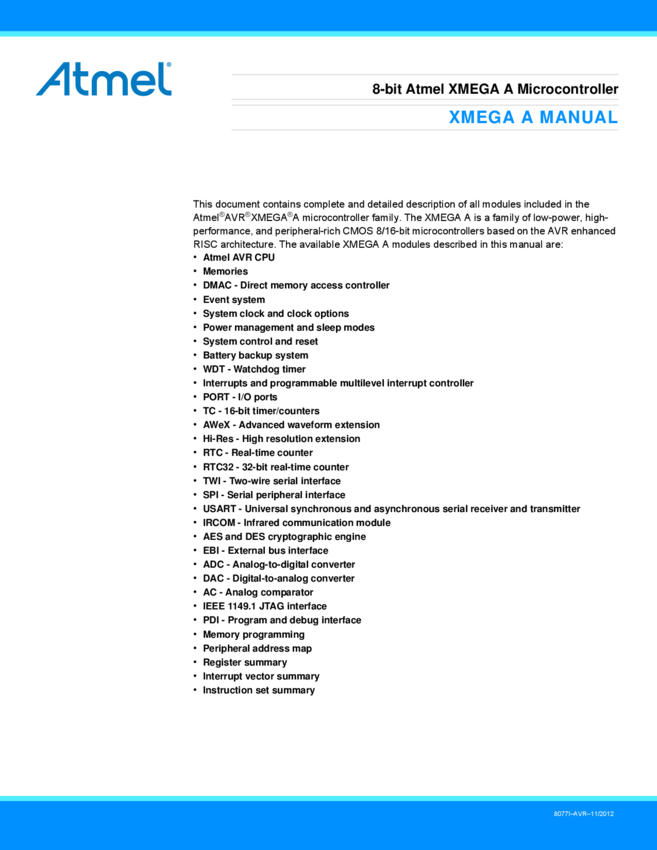Atmel AVR XMEGA A Manual Datasheet