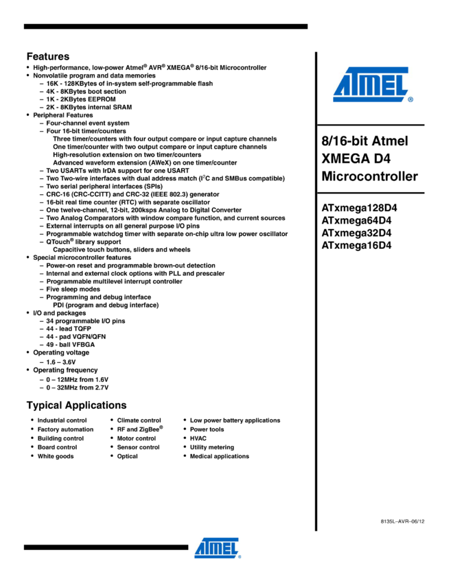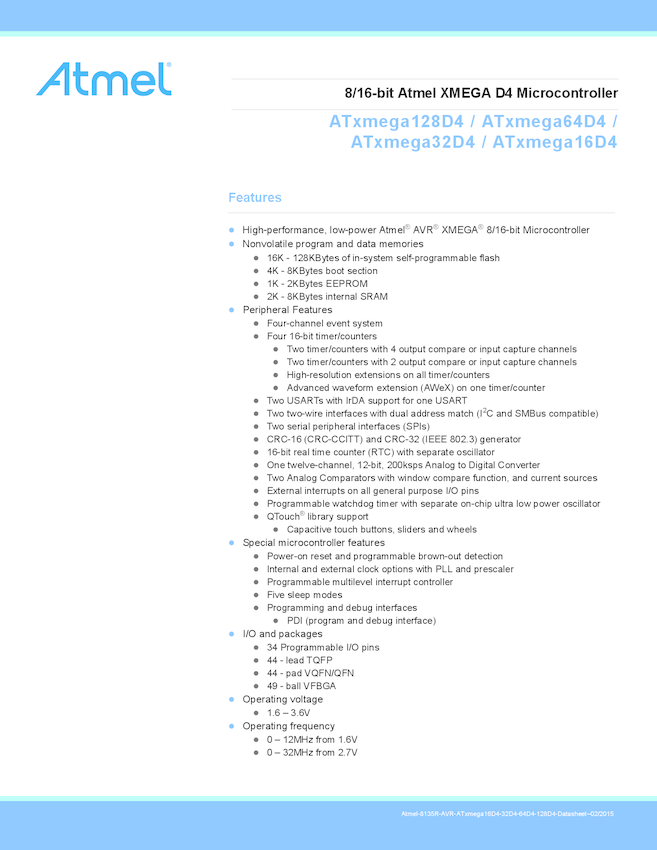 ATxmega128D4/64D4/32D4/16D4 - Complete Datasheet