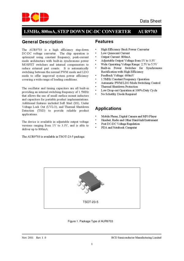 1.5MHz, 800mA, STEP DOWN DC-DC CONVERTER