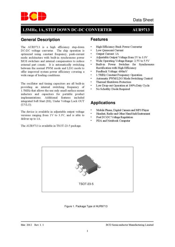 1.5MHz, 1A, STEP DOWN DC-DC CONVERTER