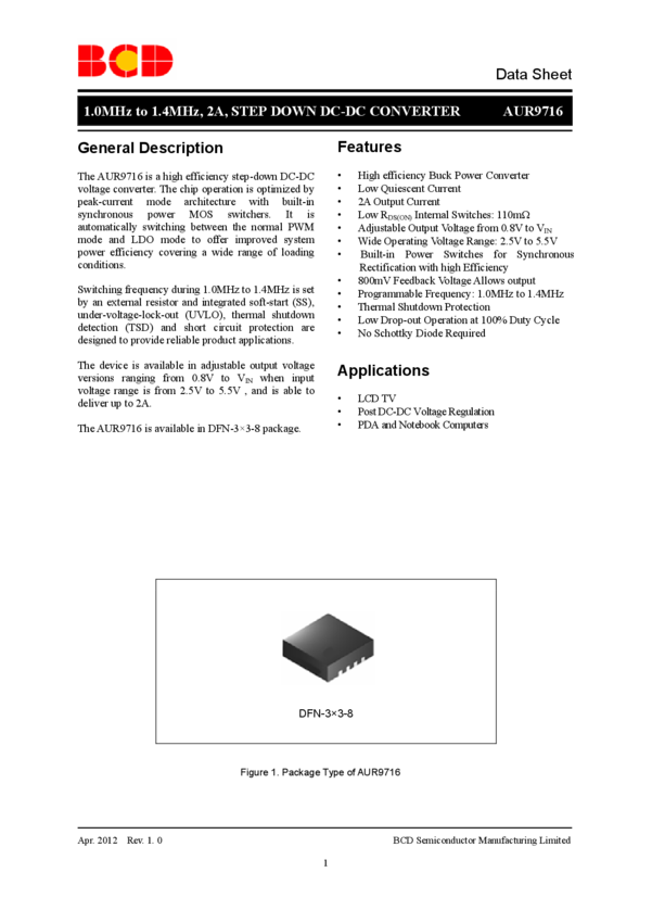 1.0MHz to 1.4MHz, 2A, STEP DOWN DC-DC CONVERTER