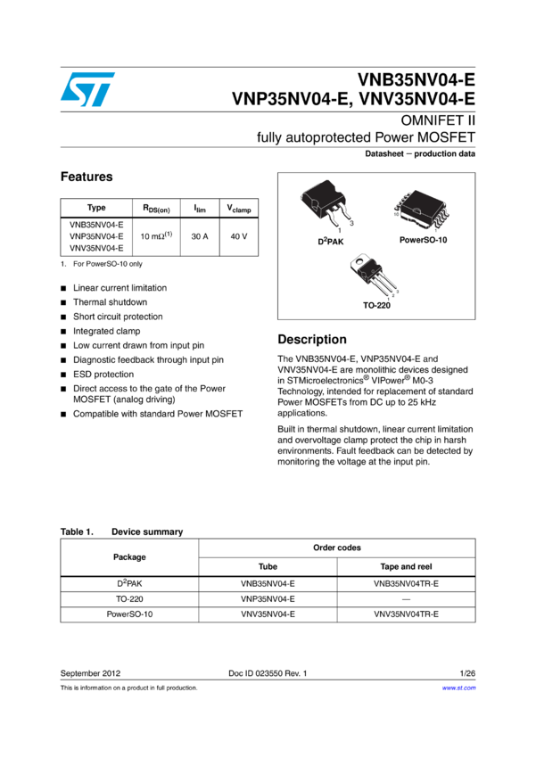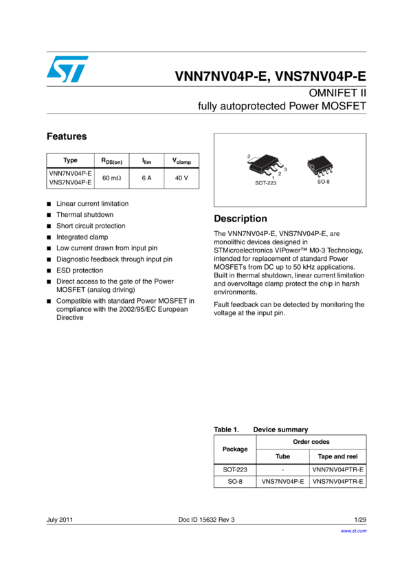 OMNIFET II fully autoprotected Power MOSFET